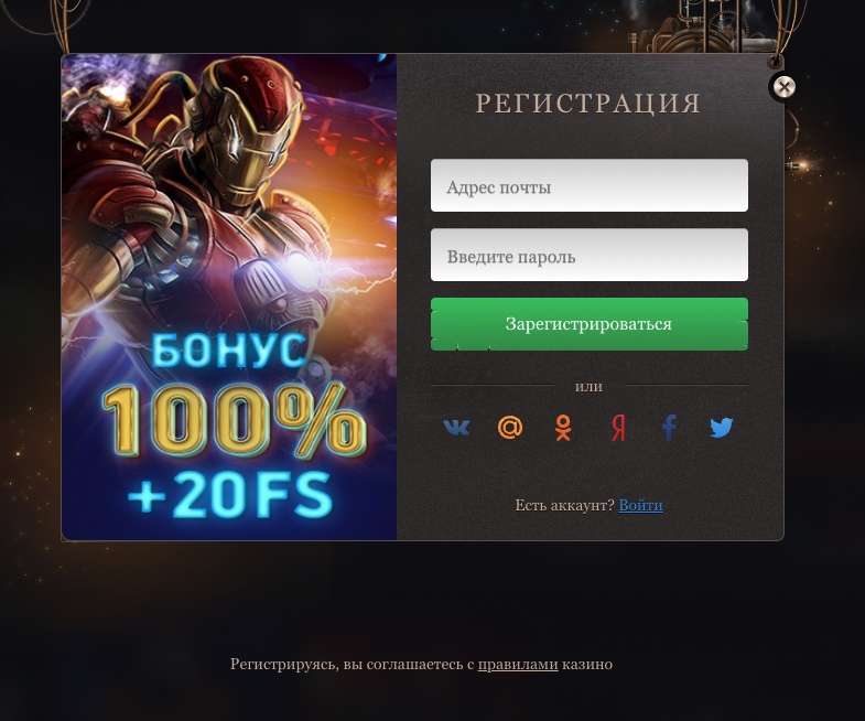 - Зарегистрируйтесь в учетной записи с помощью кнопки «войти» и внесите депозит в казино.