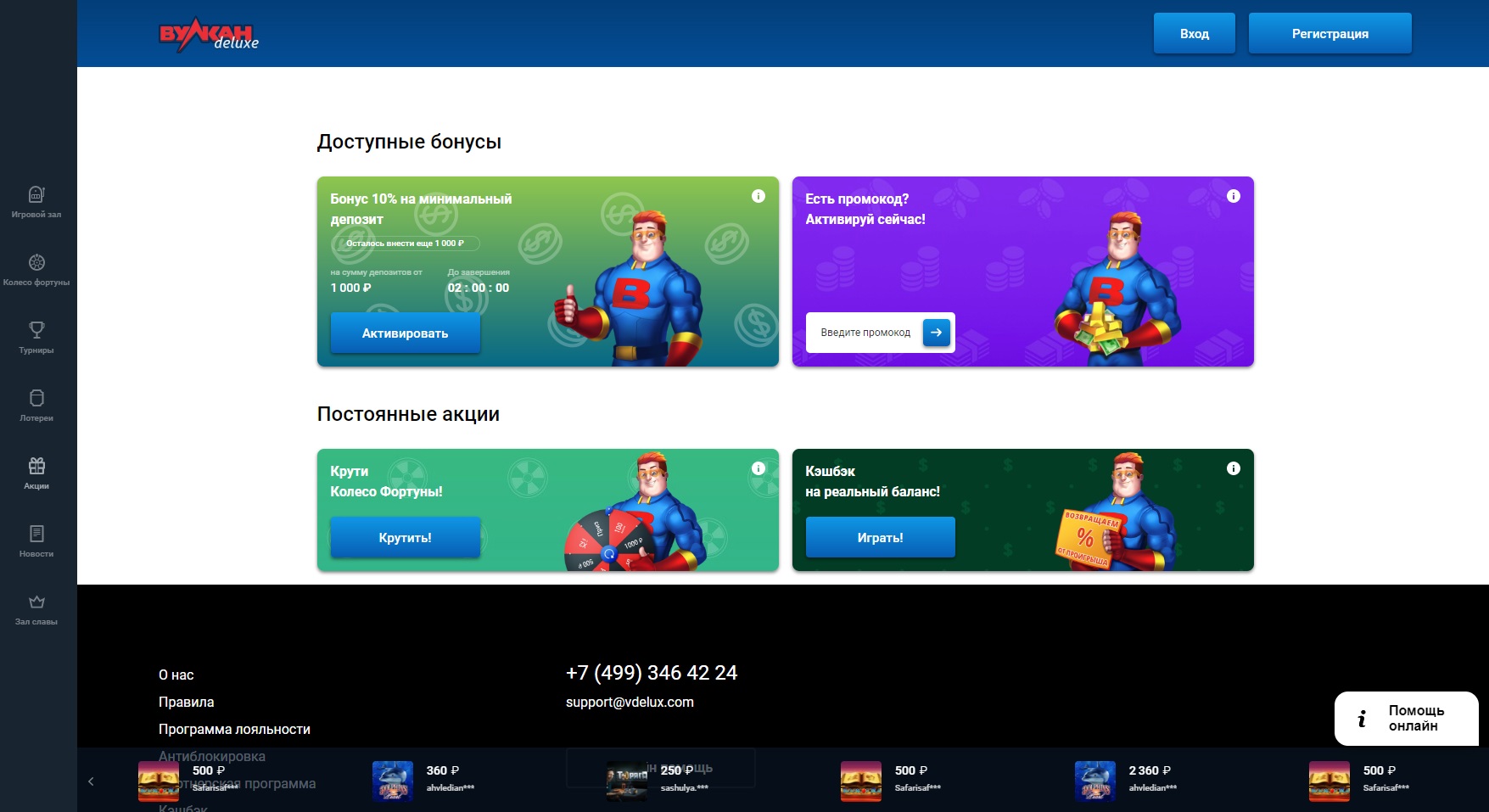 Ни одно онлайн-казино никогда не получало хорошей репутации из-за игнорирования потребностей игроков. К счастью, мы считаем, что Вулкан Делюкс находится на правильном пути, поскольку уделяет приоритетное внимание запросам игроков и обеспечивает надежную и эффективную поддержку клиентов.
