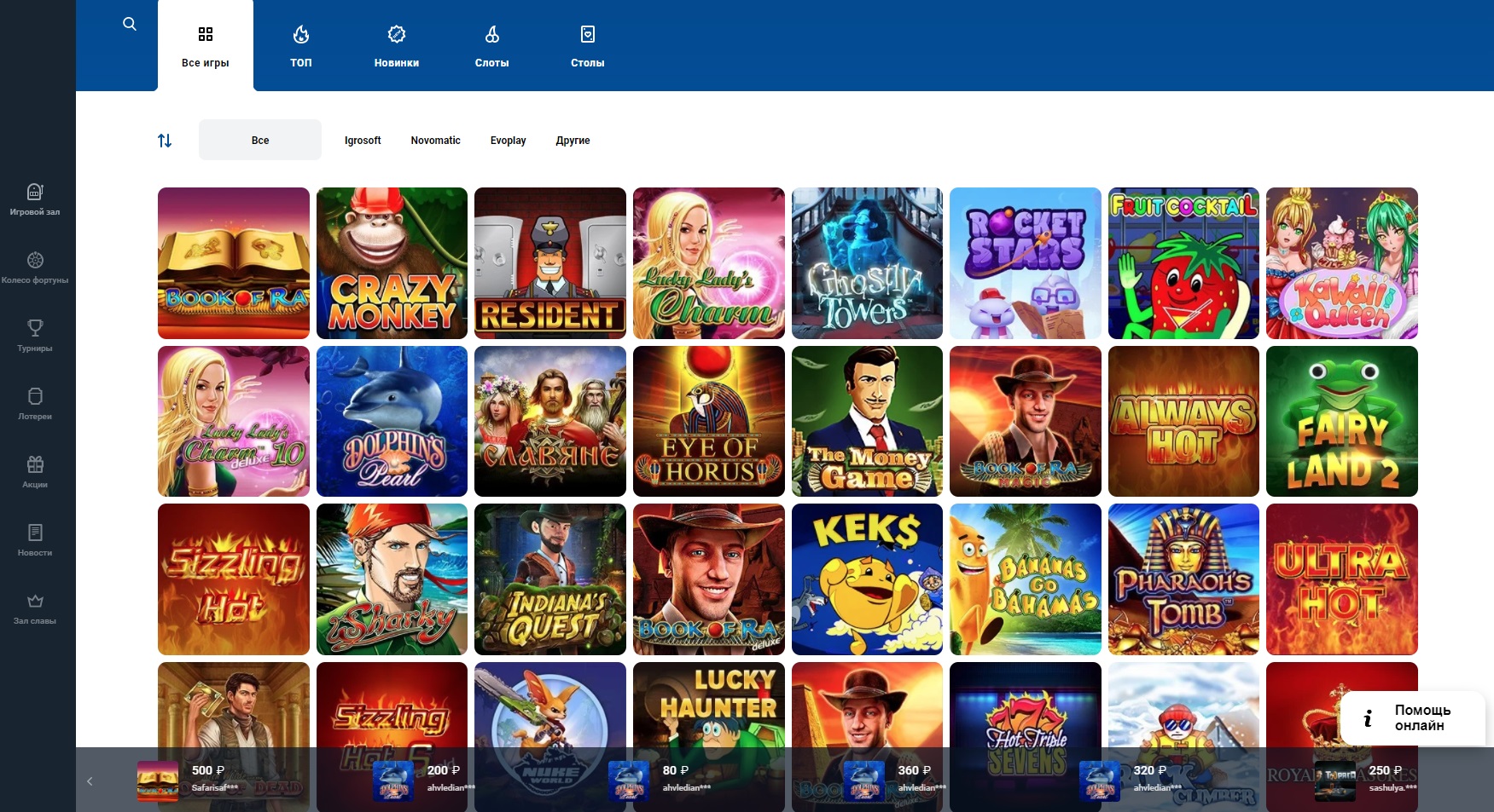 Таким образом, Вулкан Делюкс присоединяется к элитной группе онлайн-казино, которые не просто предлагают стандартный набор игр, но и получают свои игры от огромного количества поставщиков игр. Другие онлайн-казино с таким щедрым выбором игр включают: