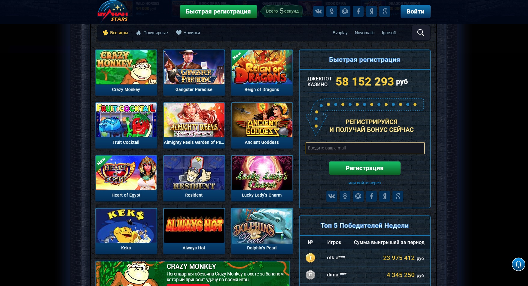 Игровые автоматы и провайдеры казино Вулкан Старс