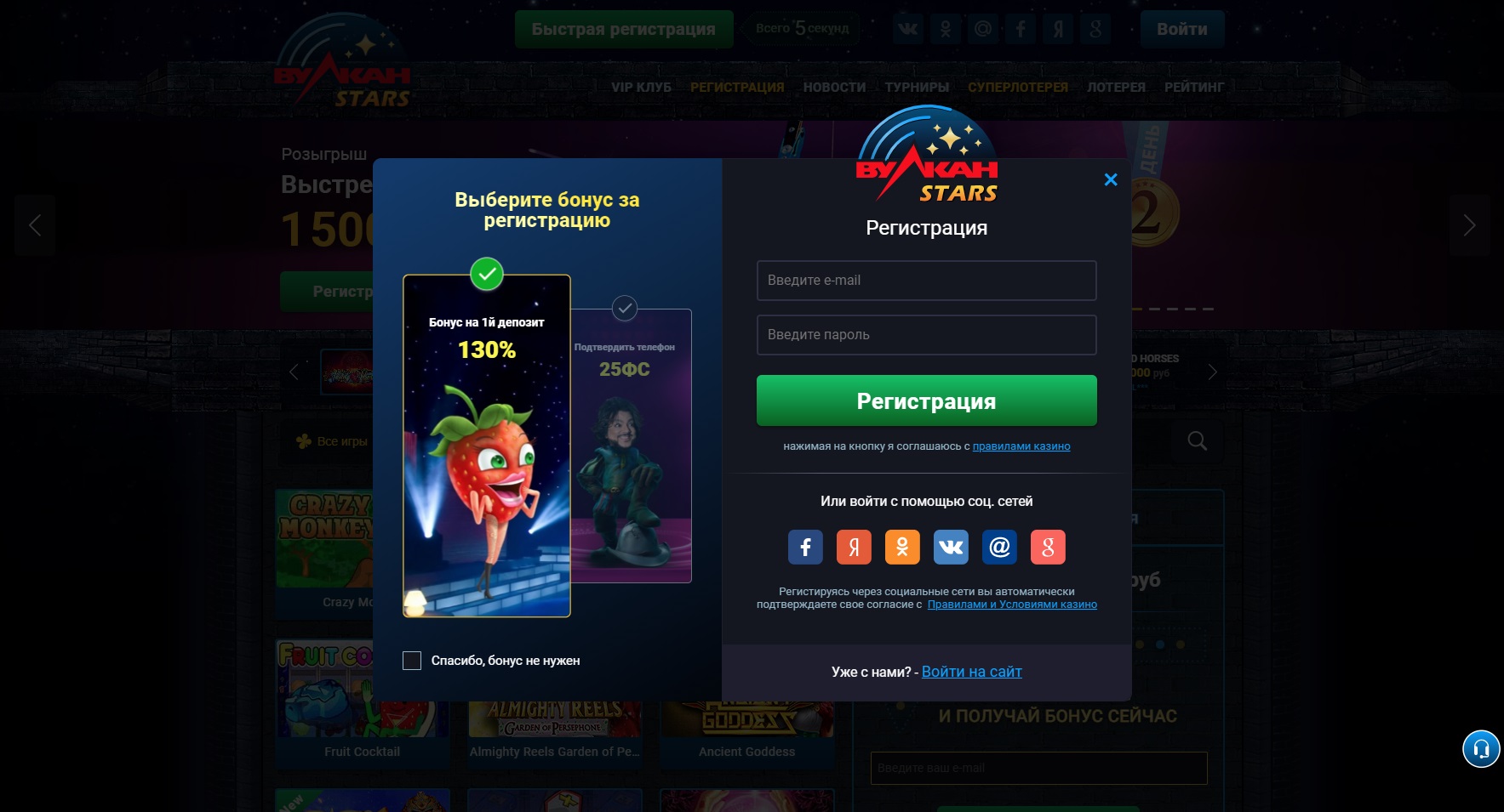 Как зарегистрироваться в казино Вулкан Старс