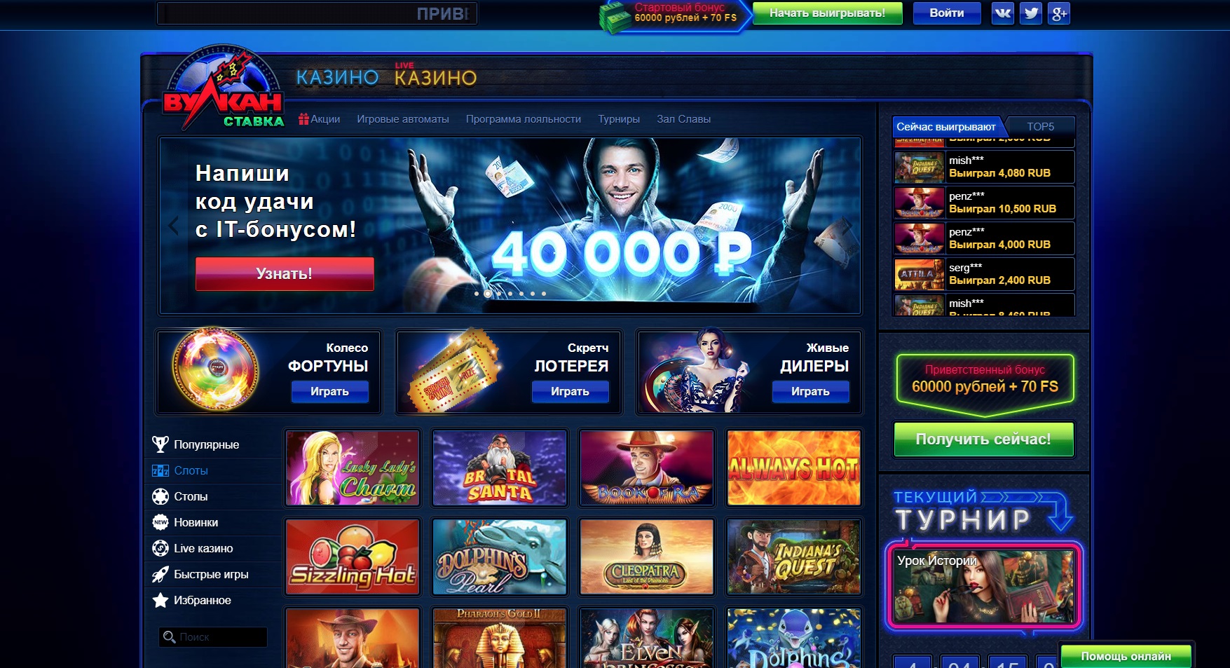 Казино Вулкан Ставка — это современный игорный сайт, которым владеет и управляет FORWAY BV, компания со штаб-квартирой на Кипре. Он предлагает значительное предложение, состоящее из ставок на киберспорт и игр в казино. Более того, казино доступно во многих странах мира.