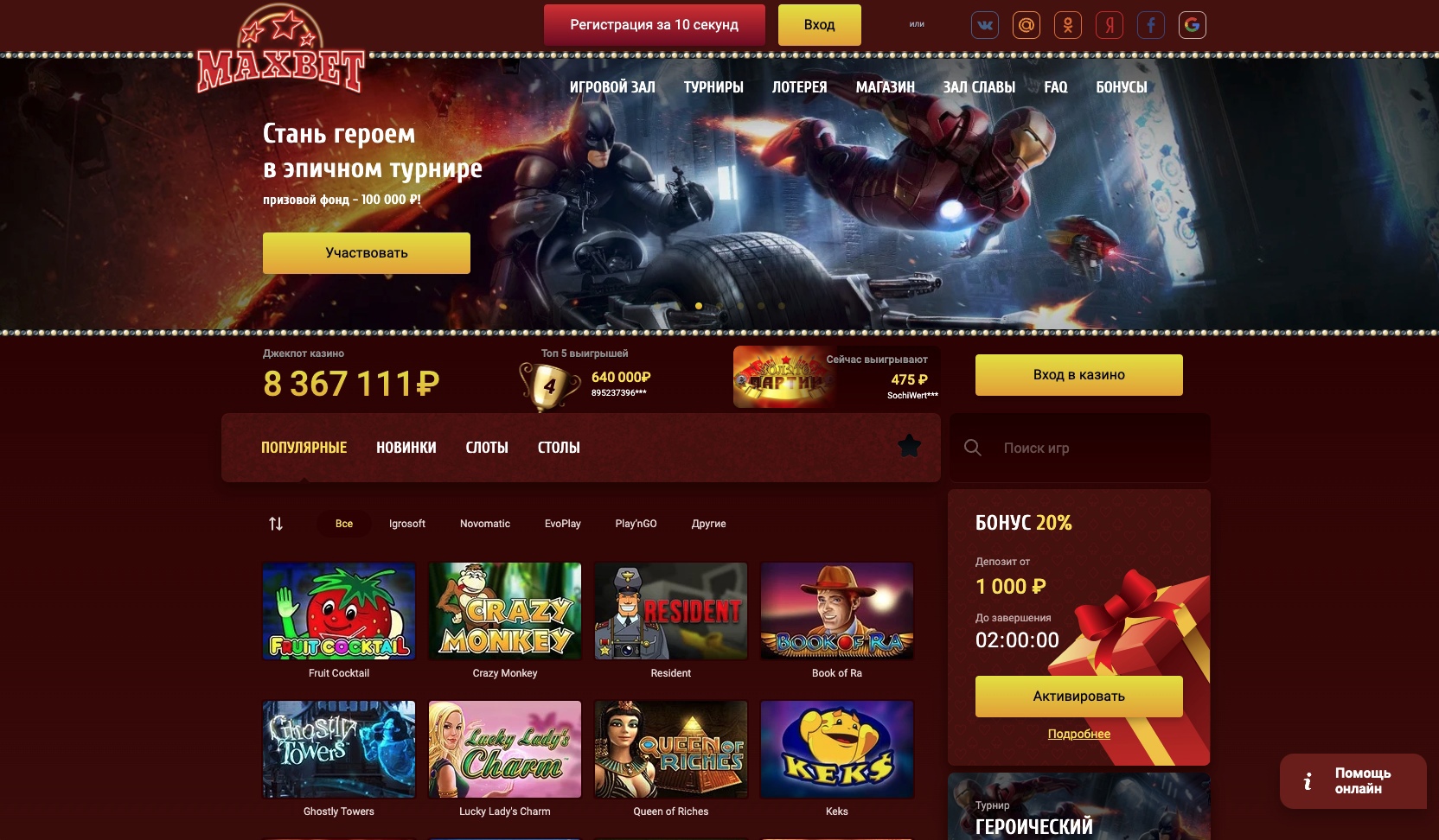 В казино Максбет игроки найдут завораживающие видеослоты с отличными сюжетными линиями и самыми разными темами. Найдите свои любимые слоты в разделе или с помощью строки поиска. Популярные игры включают Flaming Fruit, Wolf Gold, Book of Tribes, Thunder of Olympus и другие.