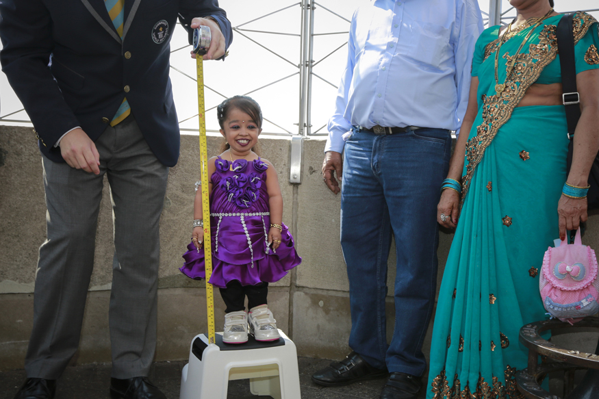 19-летний Джоти Амге из Нагпура, Индия, измерен официальным лицом Книги рекордов Гиннеса на вершине Эмпайр-стейт-билдинг в Нью-Йорке. При росте 24,7 дюйма Амге носит титул «Самой короткой из живущих женщин» с 18-го дня рождения 16 декабря 2011 года.